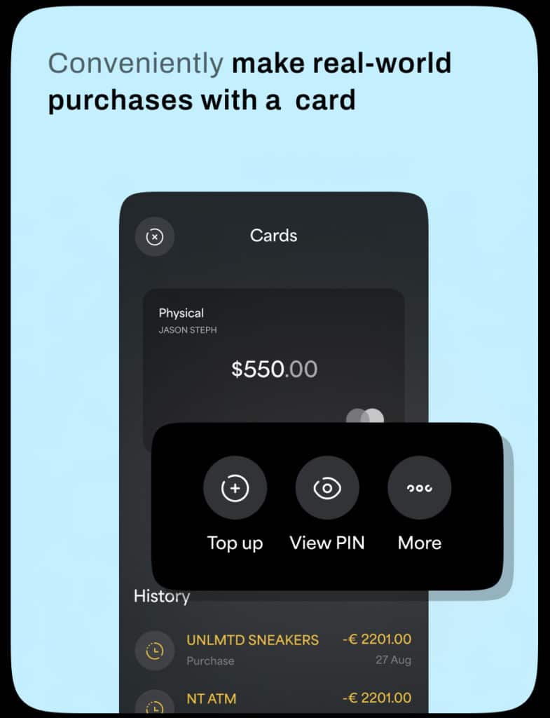 Our user interface is designed with the non-technical user in mind, ensuring that managing decentralized wallets, topping up cards, and executing transactions are intuitive actions, accessible directly through our mobile application.